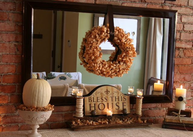 I adore the wreath because it is so unique and creative! I also love your brick walls.