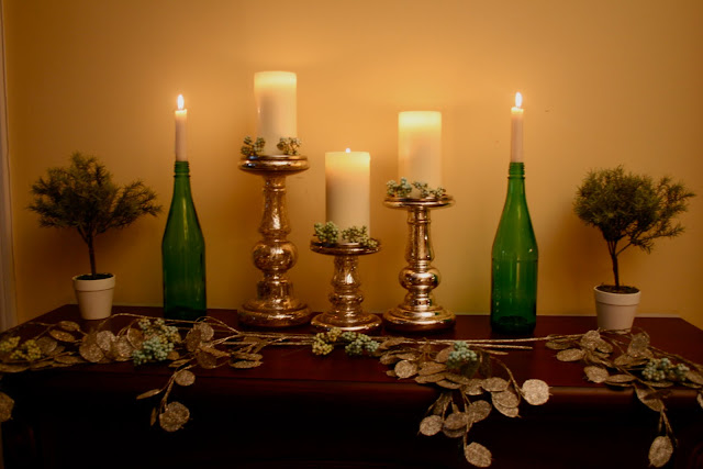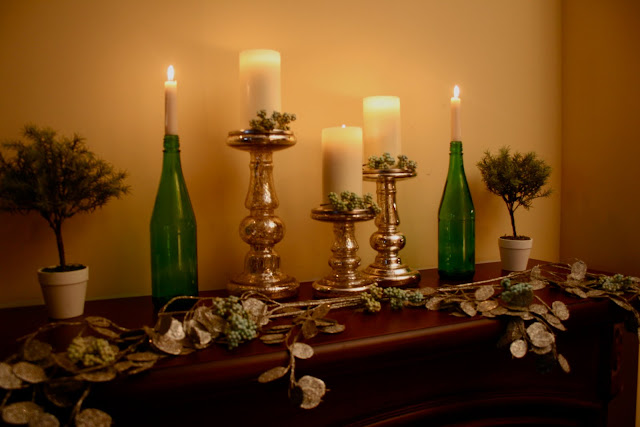 Beth, I think your blog is wonderful. You've been an inspiration to me. I posted before about your dad. What a sad situation. Had me in tears reading. (((Hugs))) I *love* the mercury glass. What a lovely gift. And the wine bottles with the candles…so cute!