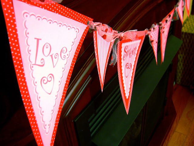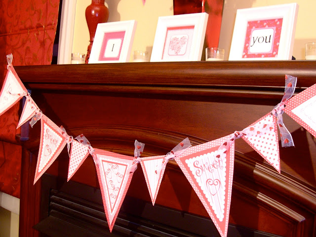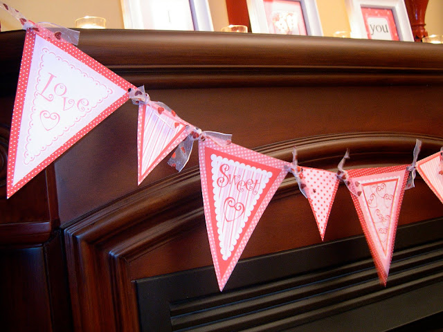 This is such an adorable creation! Valentine decor is so fun. The banner is my favorite. 🙂 But the "I love you" sign is super cute too!